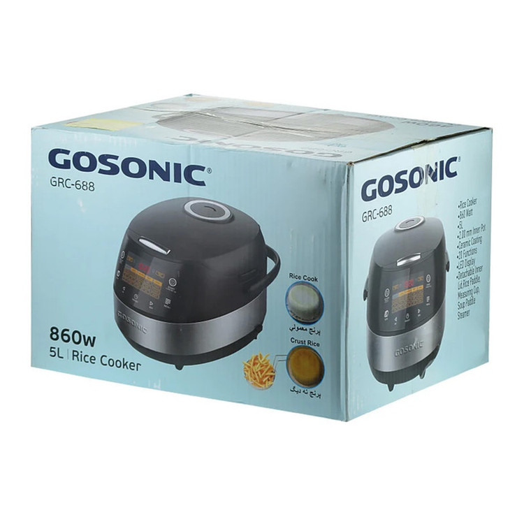 پلوپز گوسونیک مدل GRC-688 برای خانوادههایی طراحی شده که به دنبال دستگاهی کارآمد با قابلیتهای متنوع هستند. این دستگاه با توان مصرفی ۸۶۰ وات و سیستم گرمایش المنت پایین، پختی یکنواخت و مطمئن را تضمین میکند. ظرفیت ۵ لیتری آن، امکان تهیه غذا برای حدود ۱۰ نفر را فراهم میسازد و همین ویژگی، آن را انتخابی مناسب برای خانوادههای پرجمعیت یا مهمانیهای کوچک میکند. بدنه دستگاه از ترکیب استیل ضد زنگ و پلاستیک ساخته شده که علاوه بر زیبایی، دوام و استحکام خوبی به آن بخشیده است. دیگ داخلی با پوشش تفلون نچسب طراحی شده تا برنج به راحتی جدا شود و شستوشو نیز آسانتر گردد. درب دستگاه بهصورت ثابت تعبیه شده و ساختار کلی آن با وزنی معادل ۴.۸ کیلوگرم و ابعاد ۲۶x۴۰x۲۹ سانتیمتر، برای استفاده روزمره در آشپزخانه مناسب است. این مدل با بیش از ۷ برنامه پخت پیشفرض عرضه شده و حالتهایی همچون پلو، تهدیگ، ماست و خورشت را در اختیار کاربر قرار میدهد. امکان تنظیم پخت با تأخیر تا ۱۲ ساعت نیز از دیگر قابلیتهای کاربردی آن است که به شما اجازه میدهد پخت غذا را مطابق با زمانبندی خود مدیریت کنید. کنترل پنل لمسی همراه با نمایشگر دیجیتال، اطلاعاتی نظیر برنامه انتخابی، زمان باقیمانده و نور پسزمینه را در اختیار کاربر میگذارد. برای ایمنی بیشتر، دستگاه به سیستم خاموشی خودکار مجهز شده است. دفترچه راهنما نیز بهعنوان اقلام همراه، کار با دستگاه و تنظیم برنامهها را سادهتر میکند. وجود صفحه نمایش و طراحی کاربرپسند، استفاده از پلوپز گوسونیک GRC-688 را به تجربهای راحت و لذتبخش تبدیل میکند.