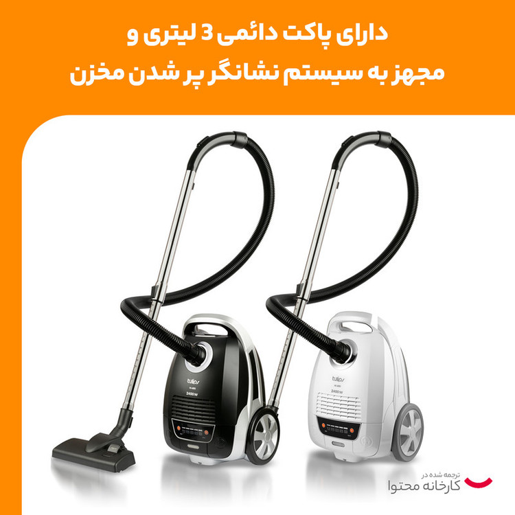 جاروبرقی تولیپس مدل VC-625D از محصولات شرکت تولیپس (Tulips) است که از طراحی زیبا و کامپکت، و کیفیت و قدرتی مطلوب بهره میبرد. این محصول به موتوری پرقدرت و با برچسب مصرف انرژی A با توان مصرفی 2400 وات مجهز شده که تنظیم میزان مکش نیز در جاروبرقی توسط کلیدهای الکترونیکی میسر شده است. این محصول با طراحی زیبا، دارای پاکت دائمی 3 لیتری مجهز به سیستم نشانگر پر شدن مخزن می باشد که البته قابلیت جایگزینی با پاکت یکبار مصرف استاندارد را داراست. فیلتر بهداشتی ضد آلرژی یا خروجی هپا (HEPA)و همچنین میکروفیلترها از مشخصات قابلتوجه این مدل است که میتواند هوای خروجی را تا بیشترین حد تصفیه و عاری از هرگونه ریزگرد مضر کند. لوله تلسکوپی فلزی با قابلیت چرخش 360 درجه که به کاربر اجازه تنظیم ارتفاع لوله را میدهد، گنجایش مناسب و شعاع کارکرد 8متری از دیگر مشخصات این مدل است که آن را درمجموع به گزینهای قابلتأمل برای مصرفکنندگان مختلف تبدیل میسازد. بدون شک، تولید محصولات برند تولیپس در شرکت صنایع الکتریکی ناسیونال ایران; با بیش از 60 سال سابقه تولید انواع لوازم برقی خانگی، جای هیچ گونه تردیدی در کیفیت و کارایی آن باقی نمی گذارد.