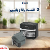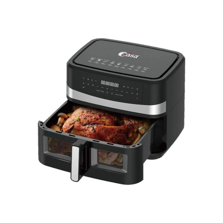 سوپر کاسا یکی از برندهای معتبر در زمینهی تولید لوازم خانگی و برقی است که چندین سال است در این حوزه فعالیت میکند. یکی از محصولات بینظیر این کمپانی، سرخ کن های بدون روغن است که در مدلهای مختلفی تولید شده است. سرخ کن های بدون روغن با تزریق هوای داغ و گردش آن در داخل محفظه، سبب آماده شدن و مغز پخت شدن غذاها میگردد. این سرخکن ها مصرف روغن را 80-90 درصد کاهش میدهند و سلامت بدن شما را برای عمری طولانی تضمین میکنند. سرخ کن بدون روغن دیجیتال دو مخزن چهار المنته مدل CA-114 یکی از محصولات کمپانی سوپر کاسا است که سبب کاهش 80 درصدی مصرف روغن شده و غذاها را با میزان مصرف بسیار پایین یا بدون روغن سالم آماده میکند. سرخ کن دارای توان مصرفی 3000 وات است که باعث آماده شدن غذاهای دلخواه شما در زمانی کوتاه میشود. گنجایش مخزن این سرخ کن 10 لیتر است که به کمک آن میتوانید دوستان یا خانواده را به صرف یک وعده غذای لذیذ دعوت نمایید. پنل کنترلی این دستگاه به صورت لمسی طراحی شده است و با یک لمس غذاهای مورد علاقهی شما را آماده میکند. سرخ کن بدون روغن دیجیتال دو مخزن چهار المنته مدل CA-114 دارای سیستم تایمر و تنظیم دما است که با تغییر آن میتوانید زمان و دمای غذای خود را تنظیم کنید. هواپز بدون روغن دیجیتال سوپر کاسا دارای طراحی بدنهی منحصر به فردی بوده که از جنس پلاستیک محکم و استیل ساخته شده و از دوام و ماندگاری بالایی برخوردار است. لازم به ذکر است در این سرخ کن قابلیت پخت همزمان دو مواد غذایی مختلف با تنظیمات مختلف وجود دارد و همچنین میتوانید حجم بالایی از مواد غذایی را در مخرن 10 لیتری سرخ کن قرار دهید و براحتی با منوهای پخت مختلف دستگاه که شامل هشت منوی پخت متنوع میباشد براحتی مواد مورد نظر را در سریع ترین زمان و سلامت ترین حالت در اختیار داشته باشید