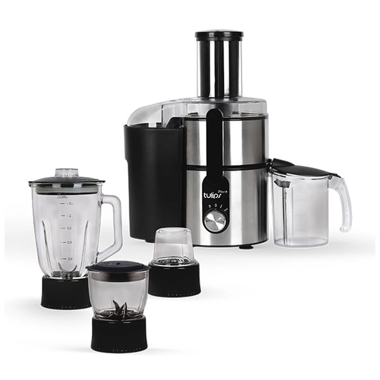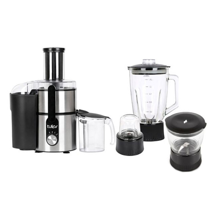 آبمیوه گیری تولیپس مدل Fj-A480 از قدرت و کیفیت مناسبی برخوردار است. صدای ایجاد شده توسط این آبمیوه گیری مانند آبمیوه گیریهای قدیمی بسیار زیاد و آزار دهنده نیست. همچنین تیغههای آن از کیفیت مناسب ساخته شدهاند و بسیار تیز هستند. برای خرید یک آبمیوه گیری خوب به قطر دهانه آن توجه کنید. امروزه اکثر آبمیوه گیریها، برای راحتی کاربران با قطر دهانه بزرگ ساخته شدهاند. بزرگ بودن قطر دهانه، یکی از مزیتهای یک آبمیوهگیری خوب محسوب میشود چرا که به شما این امکان را میدهد تا میوههای کوچک و متوسط را بدون نیاز به برش آبگیری کنید. یک پارچ مخصوص برای آبمیوه گیری تولیپس مدل Fj-A480 طراحی شده است تا در برابر دهانه خروجی قرار گیرد و آب میوه در آن جمع آوری شود. کاربران گرامی میتوانند از ظرف دلخواه و مناسب نیز برای جمع آوری آب میوه استفاده کنند. محفظه جمع آوری تفاله که در قسمت کناری محصول قرار دارد از پلاستیک ساخته شده است. همچنین این محفظه از ظرفیت مناسبی برخوردار است و نیاز به تخیه پی در پی در استفاده طولانی مدت ندارد. مخلوط کن و خرد کن این محصول دارای یک پارچ مخصوص مخلوط کن است که به بدنه اصلی و موتور دستگاه متصل میشود و دستگاه به راحتی تبدیل به یک مخلوط کن و یا خرد کن میشود. پارچ مخلوط کن، خرد کن و آسیاب از شیشه مرغوب ساخته شده است که حالت شفاف دارد و مواد درون آن دیده میشوند. در این پارچ دارای جایگاه مخصوص برای اضافه کردن مواد در حین کار است. با وجود این جایگاه مخصوص، میتوانید انواع مواد مانند شکر و... را در حین کار کردن دستگاه و بدون نیاز به خاموش کردن موتور اضافه کنید. آسیاب بهمراه آبمیوه گیری تولیپس مدل Fj-A480 یک آسیاب کوچک نیز وجود دارد که برای استفاده از آن نیز باید آن را به موتور دستگاه متصل کنید. تیغههای آسیاب نیز از جنس خوب ساخته شدهاند و بسیار تیز هستند که به سرعت موادی مثل گردو و... را آسیاب میکنند، سرعت مختلف این محصول دارای دو سرعت کم و زیاد و عملکرد پالس است. با توجه به نیاز خود و نوع مواد، امکان استفاده از سرعت مناسب وجود دارد.