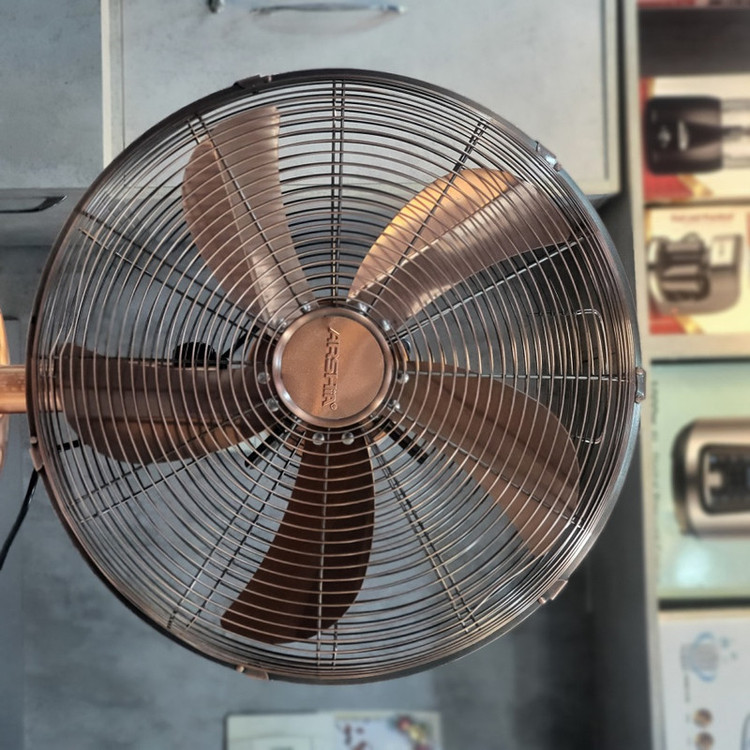 پنکه رومیزی فلزی در دو رنگ استیل و طلایی با طراحی بسیار زیبا و مقاوم و قدرت بالا مناسب برای تمام فضاها با صدای کارکرد خیلی پایین که نوع خود منحصر به فرد می باشد