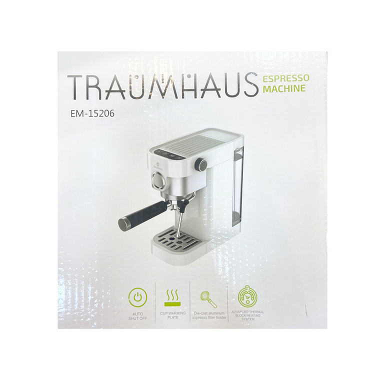 اسپرسوساز ترام هاوس مدل EM-15206 دارای طراحی شیک و منحصر به فرد بوده که فضای کمی را اشغال می کند و هر قسمتی از آشپزخانه می تواند آن را قرار داد . بدنه این اسپرسوساز بسیار مقاوم بوده و دارای بویلر آلمینیومی دایکاست جهت افزایش استحکام است. اسپرسوساز ترام هاوس مدل EM-15206 دارای صفحه نگهدارنده فنجان است که برای گرم کردن فنجان و برای قرار دادن قهوه تان تا زمانی که بخواهید نوش جان کنید طراحی شده است . فشار بخار به صورت مستقیم بر عطر و طعم قهوه خروجی از دستگاه تاثیر گذار است که در این اسپرسوساز معادل 20 بار بخار است که بهترین خروجی را در اختیارتان قرار می دهد . جنس نازل بخار اسپرسوساز ترام هاوس از استیل ضد زنگ است و برای نوشیدنی های ترکیبی و فوم شیر قابل استفاده است . توان مصرفی این اسپرسوساز معادل 1350 وات است.مخزن آب اسپرسوساز ترام هاوس مدل EM-15206قابل جدا سازی و شست و شو می باشد . مخزن شفاف 1.2 لیتری این دستگاه این امکان را به شما می دهد که بتوانید میزان آب درون دستگاه را ببینید . این اسپرسوساز دارای پمپ حرارتی است که وظیفه تامین مورد نیاز برای بالا بردن دمای آب جهت عصاره گیری از قهوه را در اختیار دارد . یکی از ویژگی های خاص این اسپرسوساز استفاده از پمپ آب ULKA ایتالیایی با فشار 20 بار می باشد .