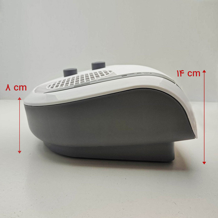 بخاری برقی فن دار رومیزی آراسته منطبق بر استانداردهای ایمنی و توان خروجی 2000 وات، 2 حالت دمایی مختلف طراحی و عرضه شده است. این هیتر فن دار، مجهز به سیستم قطع کن خودکار است و در صورت جابهجایی یا واژگون شدن به طور خودکار ورود جریان برق به هیتر قطع و خاموش میشود. در ساخت بدنه این محصول از مواد باکیفیت پلاستیکی استفاده شده است و در برابر افزایش دما مقاوم است و تغییر حالت نمیدهد. بر روی بدنه بخاری دو پیچ تنظیم تعبیه شده است که با استفاده از آنها مقدار دما و وضعیت بخاری را میتوان کنترل و تنظیم کرد. با توجه به ظاهر زیبا و طراحی مدرن و خاص این محصول در مقایسه با سایر بخاری برقیهای عرضه شده در بازار، بسیار پرفروش و محبوب است و انتخابی مناسب و ایمن برای سیستم گرمایش کمکی در دفاتر اداری، اتاق خواب و پذیرایی، آشپزخانه، مغازه و… است. مدل FHA2000 طراحی ایمنی دارد، اگر ورودی جریان هوا به داخل بخاری بسته شود به طور خودکار خاموش میشود. این بخاری در ابعاد 25×27×14 و وزن 1.377 کیلوگرم طراحی شده است و با توجه به وزن سبک و ابعاد جمع و جور آن به آسانی قابل حمل است و در نقاط مختلف به راحتی قابل قرار گیری است. این هیتر در سه حالت زیر قابل تنظیم است: هوای سرد: در این وضعیت تنها فن دستگاه روشن است و جریان هوای خنک مطبوعی در فصل تابستان ایجاد میکند. هوای گرم 1: در این حالت فن دستگاه به همراه المنت با نصف توان روشن میشود. هوای گرم 2: در این حالت فن دستگاه به همراه المنت با تمام توان روشن میشود.