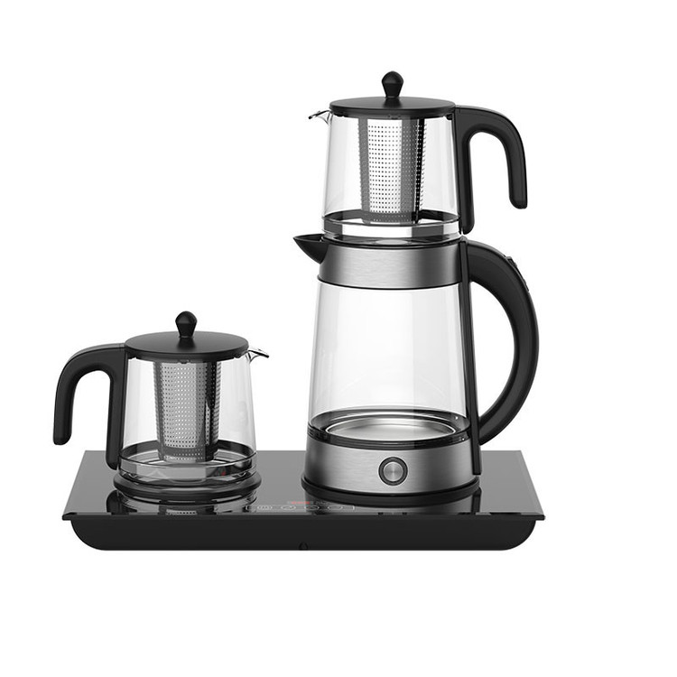 کتری پیرکس، 2 عدد قوری پیرکس، 3 عدد در، پنل کنترل لمسی، کابل برقی، 2 عدد صافی استیل زد زنگ