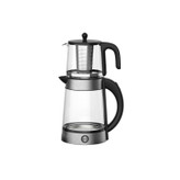 چای ساز کنارهمی ترام هاوس مدل TS-12172 با طراحی بسیار زیبا و مدرن خود جزو برترین چای ساز ها در حوزه طراحی ظاهری می باشد.جنس کتری دستگاه از شیشه پیرکس با دوام بسیار بالا در برابر حرارت و دما می باشد. ظرفیت کتری چای ساز به 1.7 لیتر می رسد.جنس قوری دستگاه نیز مانند کتری از شیشه بوده که به راحتی می توانید رنگ چای دم شده را مشاهده بفرمایید.ظرفیت قوری های این چای ساز به 1 لیتر می رسد.صافی در نظر گرفته شده برای دستگاه از جنس استیل ضد زنگ بوده که به راحتی قابل جدا سازی و تخلیه صافی می باشد.جنس زیرین یا سینی دستگاه از نرکیب سرامیکه و شیشه بوده که طراحی چشم نوازی را به دستگاه القا کرده است.برای کنترل دستگاه و برنامه دم آور و چای ساز یه پنل دیجیتال روی بدنه اصلی قرار گرفته است.از ویژگی های این صفحه زیبای چای ساز قابلیت چرخش 360 درجه قوری و کتری بوده که راحتی و استفاده آسوده را برای کاربر فراهم می کند.توان خروجی در نظر گرفته برای چای ساز ترام هاوس مدل TS-12172 به 2200 وات می رسد. این توان قدرتمند دستگاه به راحتی قادر به رساندن آب به نقطه جوش و دم آوردن چای موردنظر شما می باشد.این توان مصرفی توسط یک فیوز اتصالی به المنت به کتری و قوری منتقل می شود.ویژگی قطع کن خودکار و قطع کن اتمام آب از ویژگی های شاخص وبسیار مفید دستگاه بوده که باعث افزایش طول عمر مفید دستگاه و کاهش خطرات احتمالی می دهد.