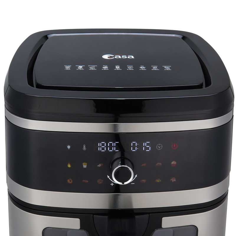 سوپر کاسا یکی از برندهای معتبر در زمینهی تولید لوازم خانگی و برقی است که چندین سال است در این حوزه فعالیت میکند. یکی از محصولات بینظیر این کمپانی، سرخ کن های بدون روغن است که در مدلهای مختلفی تولید شده است. سرخ کن های بدون روغن با تزریق هوای داغ و گردش آن در داخل محفظه، سبب آماده شدن و مغز پخت شدن غذاها میگردد. این سرخکن ها مصرف روغن را 80-90 درصد کاهش میدهند و سلامت بدن شما را برای عمری طولانی تضمین میکنند. سرخ کن بدون روغن دیجیتال دو المنته CA-119 یکی از محصولات کمپانی سوپر کاسا است که سبب کاهش 80 درصدی مصرف روغن شده و غذاها را با میزان مصرف بسیار پایین یا بدون روغن سالم آماده میکند. سرخ کن دارای توان مصرفی ۲۱۵۰ وات است که باعث آماده شدن غذاهای دلخواه شما در زمانی کوتاه میشود. گنجایش مخزن این سرخ کن 9.2 لیتر است که به کمک آن میتوانید دوستان یا خانواده را به صرف یک وعده غذای لذیذ دعوت نمایید. پنل کنترلی این دستگاه به صورت لمسی طراحی شده است و با یک لمس غذاهای مورد علاقهی شما را آماده میکند. سرخ کن بدون روغن دیجیتال دو المنته CA-119 دارای سیستم تایمر و تنظیم دما است که با تغییر آن میتوانید زمان و دمای غذای خود را تنظیم کنید. هواپز بدون روغن دیجیتال سوپر کاسا دارای طراحی بدنهی منحصر به فردی بوده که از جنس پلاستیک محکم و استیل ساخته شده و از دوام و ماندگاری بالایی برخوردار است.